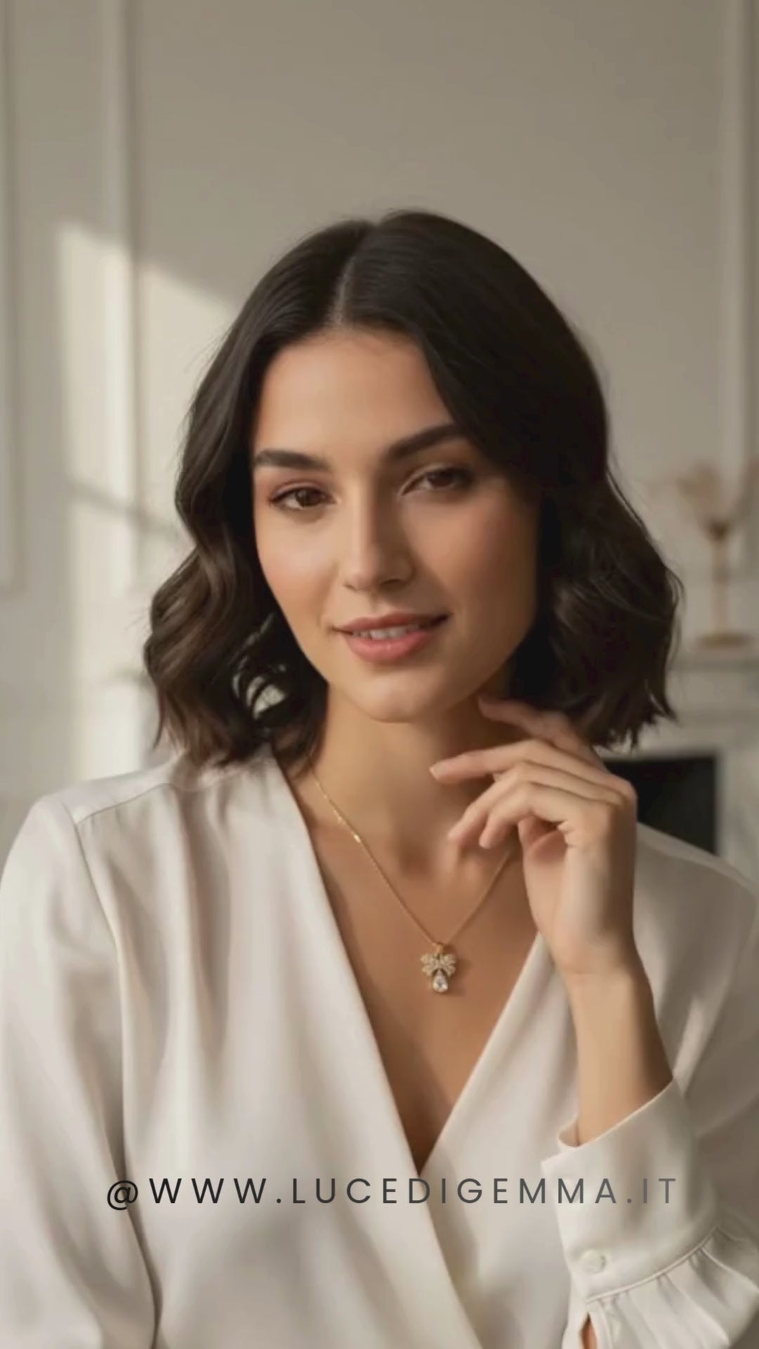 Elegante collana con pendente a fiocco decorato con scintillanti zirconi cubici, con al centro un cristallo taglio a goccia. Perfetto per aggiungere un tocco di glamour.